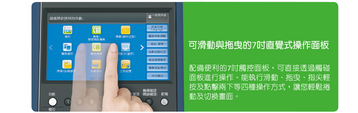 | 自動(dòng)雙面送稿器 | 內(nèi)建 / 紙張容量60張 / 送紙速度黑白 : 35 ppm 彩色 : 20 ppm |