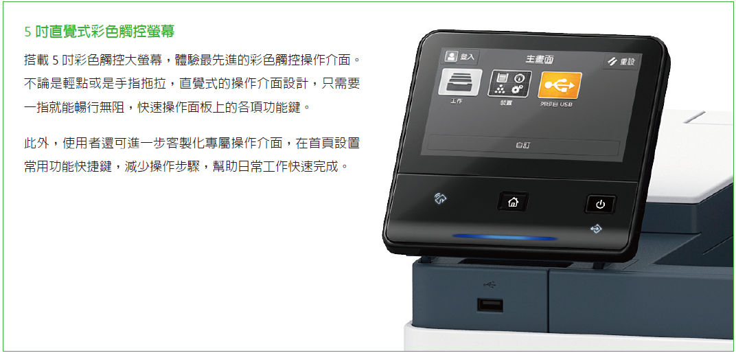 DocuPrint P505 d / CP505 d 是專為客戶需求客製的列印設(shè)備,適用於所有需要銳利圖像處理,及快速處理效能的使用者。 簡單、易用、客製化的5.0 吋觸控大螢?zāi)?,輕鬆建構(gòu)智慧辦公環(huán)境,工作更有效率。